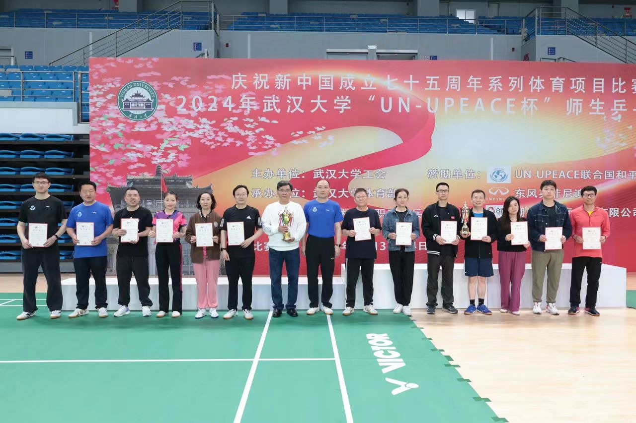 2024年4月13日—14日,庆祝新中国成立75周年系列体育项目比赛之2024年武汉大学“UN-UPEACE杯”师生乒乓球比赛在卓尔体育馆隆重举行。政治与公共管理学院和国家网络安全学院联合组队参赛。经过两天激烈角逐,政管-网安联队凭借精湛技术和团结协作的精神勇夺赛事季军,献礼新中国成立75周年。