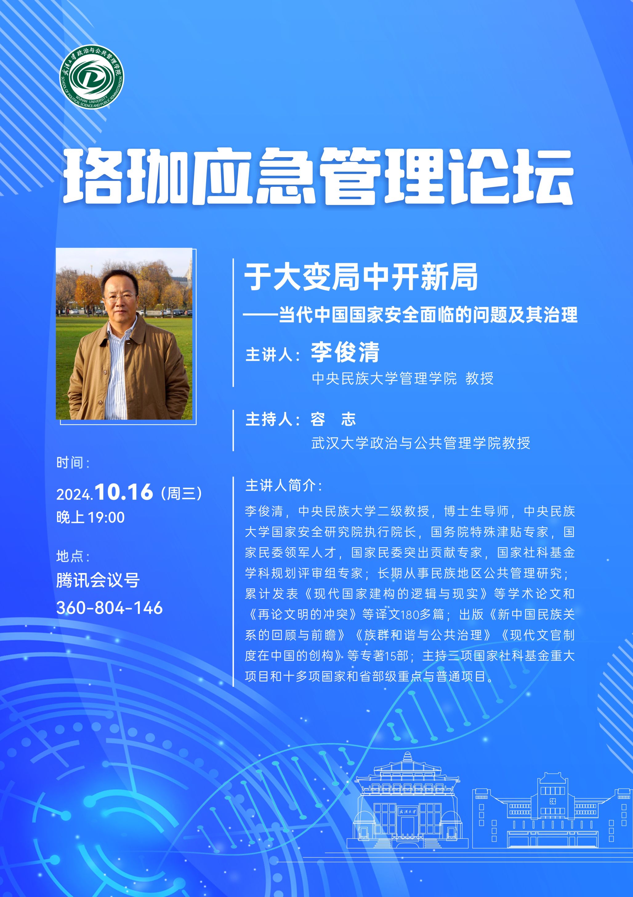 【预告】珞珈应急管理论坛(2024年10月16日)