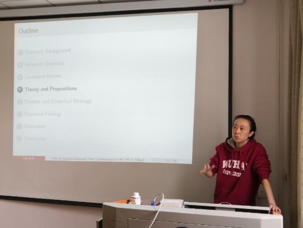 2019年11月7日,政管院青年学术团队沙龙于学院317教室举行,本期的交流题目为“How do Congressional Deputies Represent Their Constituencies in the Local People's Congress in China?——Evidence from a Municipal People's Congress in Central China”,主讲人为楼笛晴副教授,主持人为田蕴祥副教授。本次活动由政管院教师教学发展中心主办。