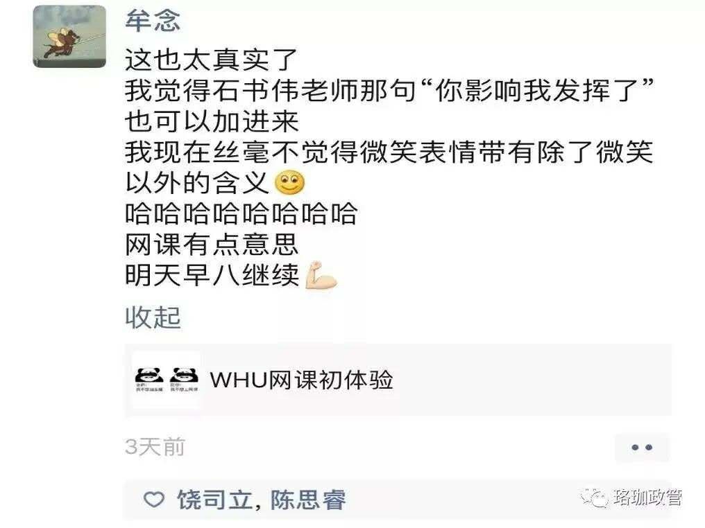 微信群线上即时答疑,手把手一对一辅导,身处大江南北的老师们和身在天南海北的政管学子们,网络教学一线牵,居家防疫两不误,在线学习不虚度。