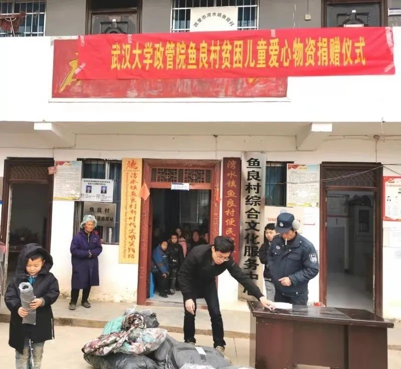 (一)我院研究生会举办“珞珈·凯里”携力关爱山区儿童小额捐赠活动 2021年1月2日,我院研究生会联合湾水镇鱼良村党支部、雅居乐集团,依托贵州凯里鱼良村“武大政管院筑梦西部家国情怀教育基地”,开展“珞珈·凯里”携力关爱山区儿童小额捐赠活动。活动历时三天,自2021年1月2日起始截止至20201年1月4日24时,最终筹得善款3913.24元。诸多武大学子及校友踊跃地参与到捐赠活动中来,贡献力量奉献爱心,点滴之爱汇聚成河。在经过捐赠汇总、物资采买及运送、组织发放等环节后,1月15日,武汉大学政管院鱼良村贫困儿童爱心物资捐赠仪式在鱼良村综合文化服务中心顺利举行。鱼良村驻村第一书记、我院杰出院友吴家俊为当地31名贫困儿童分发过冬物资。我院根据吴家俊提供的受助名单共采购35件羽绒服以及35双手套,同时将所有捐赠同学留言汇总整理,誊写至明信片一并寄送。