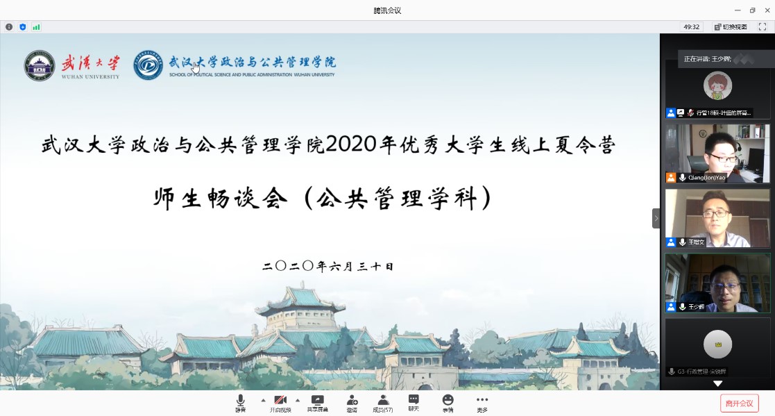 6月28日-30日,政治与公共管理学院组织开展“2020年优秀大学生线上夏令营”活动。来自北京大学、中国人民大学、浙江大学等38所大学的79名优秀本科生参加交流和选拔。